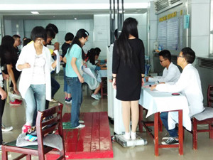 新生报到后,由学生会工作人员带领并由医院志愿者帮助医生们进行新生的体检工作。每天上午八点半至下午五点半于学校门诊部检查胸部透视。 志愿者们引导新生进行各项体检项目的检查,分别有身高、体重、采血、内科、外科。威尼斯144777cm新生依次进行了体检。同学们有纪律,不插队乱跑,积极配合志愿者和医生的工作。