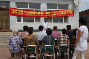 为深入学习贯彻习近平总书记系列重要讲话精神,激发广大青年学生成才报国的责任感和积极性,同时也为基层群众普及常见流行病的相关知识,7月13日,威尼斯144777cm组织志愿队伍来到长春市二道区劝农山镇东风村杨朋铺屯开展了2015年暑期“三下乡”讲座宣传活动。
