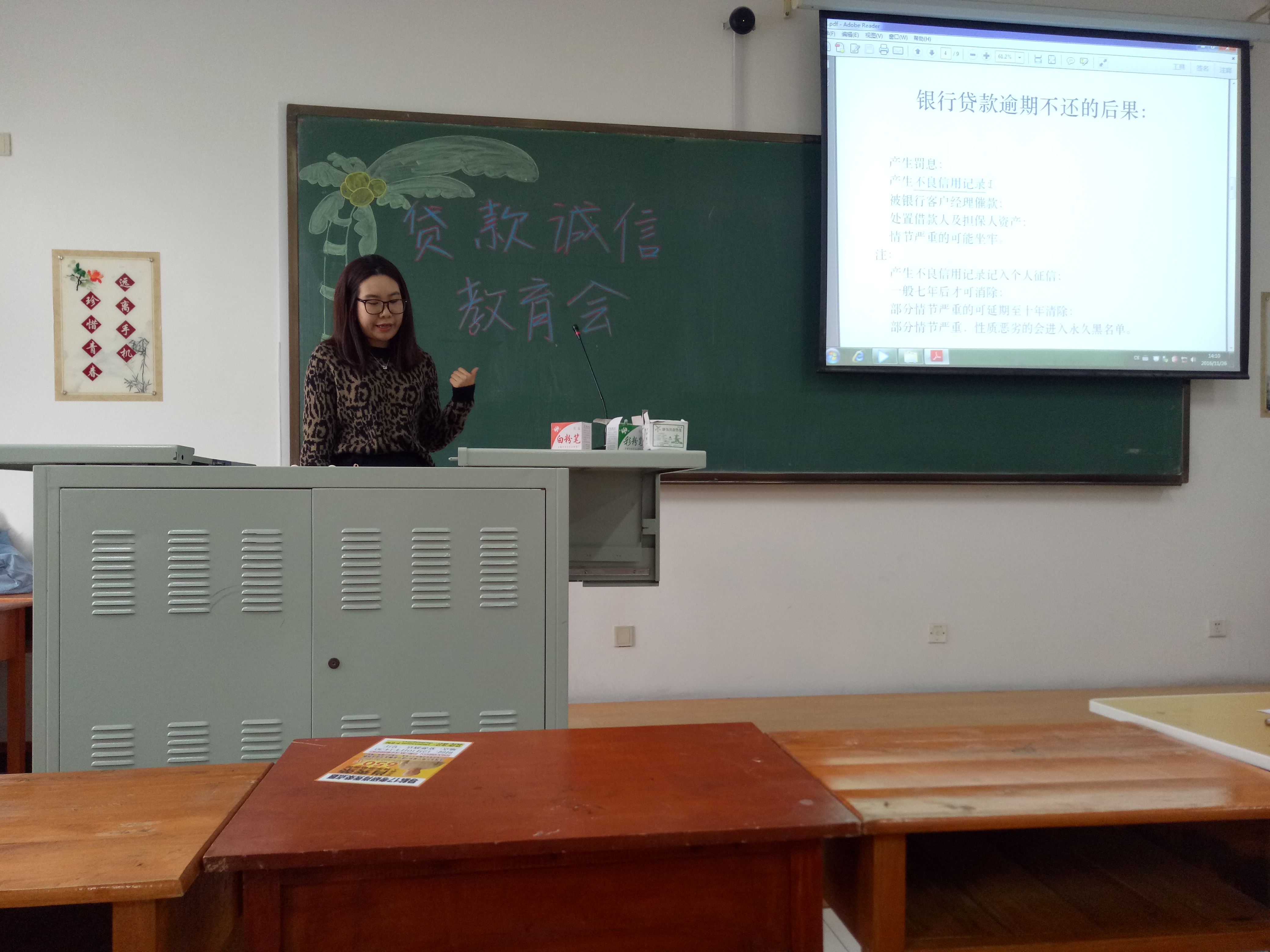 为进一步增强威尼斯144777cm2016级新生在申请校园地贷款过程中的诚信意识,11月26日下午,学院于中心校区李四光楼314教室举行了学生贷款诚信教育会。活动有幸邀请到中国银行刘营女士为同学们讲解关于校园地贷款的相关事宜,威尼斯144777cm2016级学生辅导员霍睿出席并主持了本次教育会。