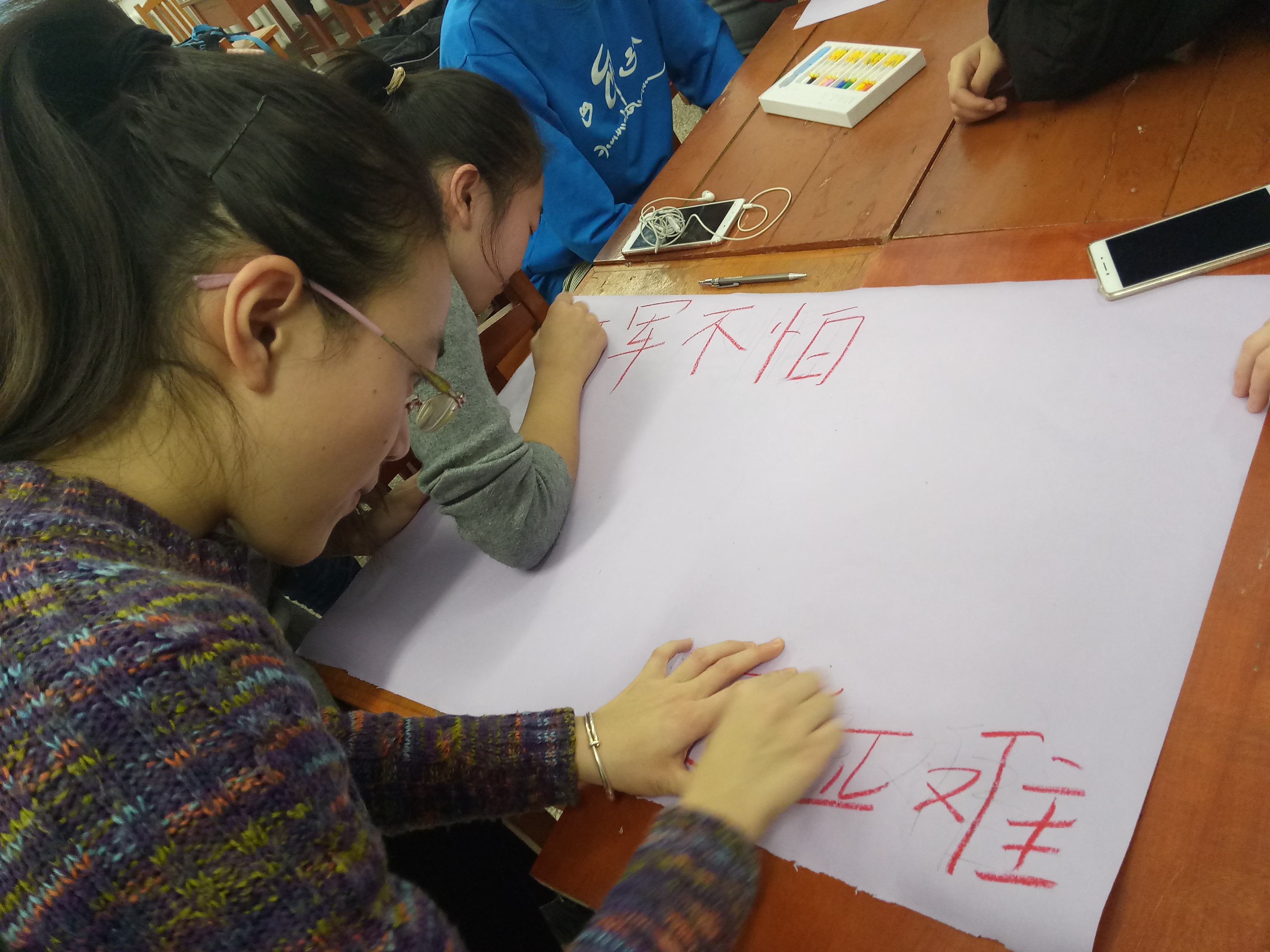 本次班会主要分为3个环节进行。第一环节是“彩绘黑板报”,将长征中的点点滴滴画于黑板之上,抒发同学们内心的长征情怀。第二个环节是“绘制手抄报”,用图形、色彩、文字展现出长征路上的艰辛以及红军战士们的勇敢、顽强。“五岭逶迤腾细浪,乌蒙磅礴走泥丸”的壮阔气势,“更喜岷山千里雪,三军过后尽开颜”的灵魂震撼,伴随着红军战士们那种冲破困境的勇气与感动,跃然纸上,触动人心。第三环节是“重走长征路”,在中国地图的基础上,同学们手绘出了长征路线,并前后勾连成完整的长征线路图,将自己零碎的记忆拼接在一起,缀连出的不仅仅是红军战士们翻过、淌过的万水千山,更是革命先烈们用血泪为子孙后代铸就的光明前程。