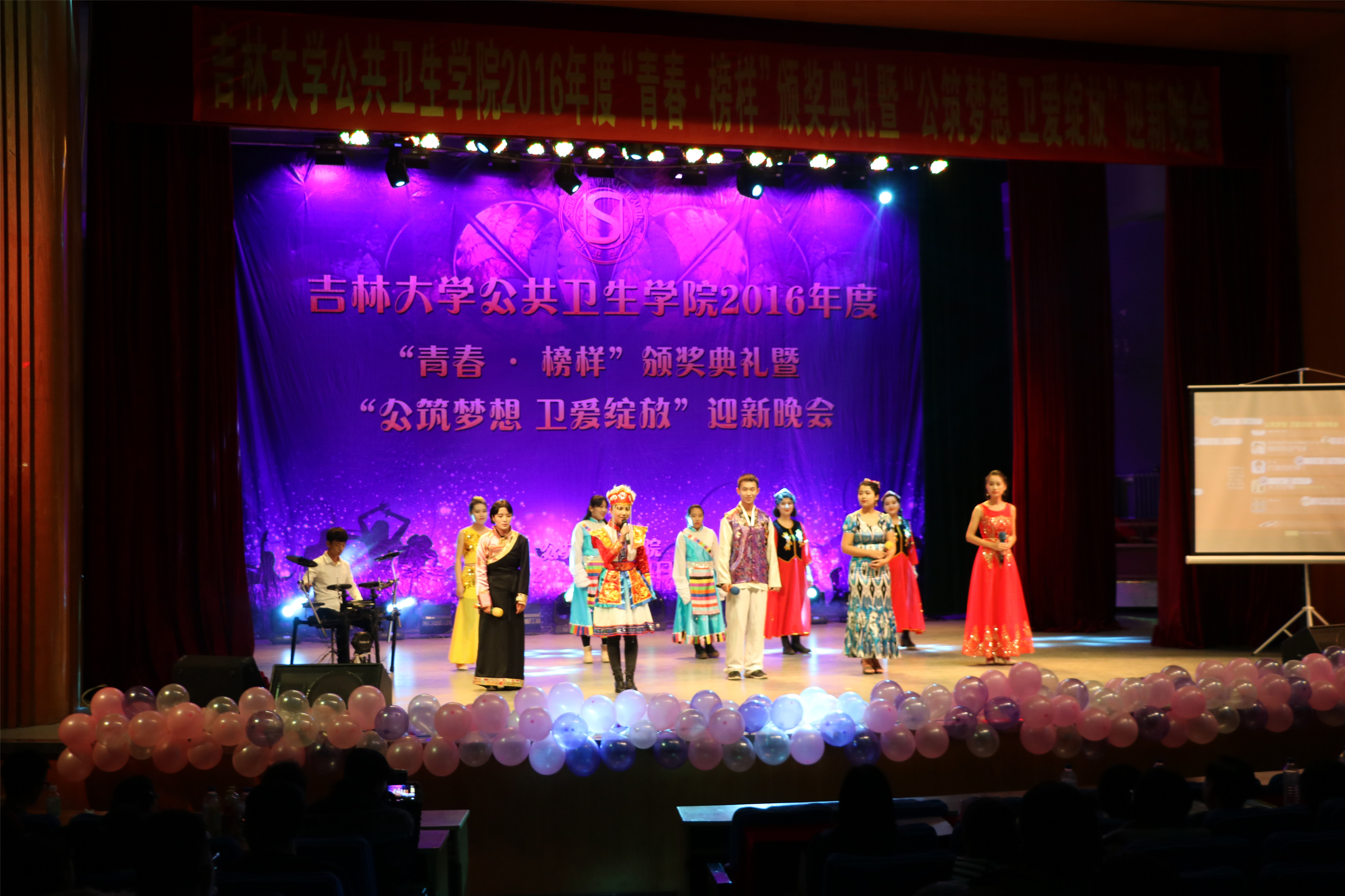 在一阵热烈的掌声中,活力十足的劲歌热舞率先掀起了威尼斯144777cm2016年度“公筑梦想 卫爱绽放”迎新晚会的高潮。整场晚会呈现的节目精彩连连:歌曲《陪你一起看草原》和民族歌舞串烧《喜欢你》为观众呈现了多姿多彩的民族文化,营造出民族融合、共同进步的和谐盛景;诗歌朗诵《祖国,我亲爱的祖国》字字铿锵有力,句句掷地有声,唤起了同学们深藏心底的爱国情怀;搞笑喜剧《大话公卫》更是以幽默风趣的台词介绍了学院的现状、学科的发展前景以及同学们的校园生活状态;《大学生活》是同学们精彩演绎的视频配音作品,表演方式新颖独特,引起了现场观众的共鸣;歌舞《恋人心》和《告白气球》利用流行元素,烘托出同学之间浪漫的情愫,展现出公卫学子的青春与活力;《相亲相爱》是威尼斯144777cm全体师生共同表演的大型歌舞,寄托了学院全体师生精诚互助、共同进步的精神内涵,在师生亲密无间的合作中,晚会渐渐步入了尾声。