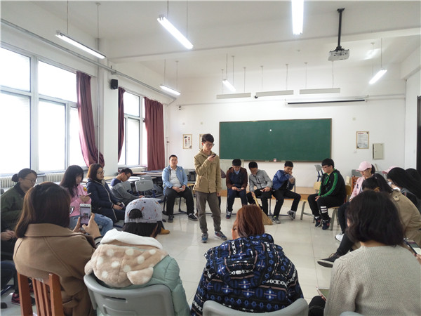 本次主题班会由各班团支书主持。热身环节为即兴表演情绪卡片,以此带动同学们的活动情绪,活跃集体氛围。高潮部分由各个小组展示贴近生活的情景剧,并由观众发表感想。在交流的同时,也反映出了同学们内心的真实想法,以此提高同学们的心理素质。活动中,同学们都认真准备,充分发挥自己的想象力和表演力,使观众乐在其中。随后的“大风吹”游戏更是让同学们在合作中体会到了团体的力量,感受到了本次活动的真谛所在。最后,以新同学的自我介绍做结,班会在掌声中落下帷幕。