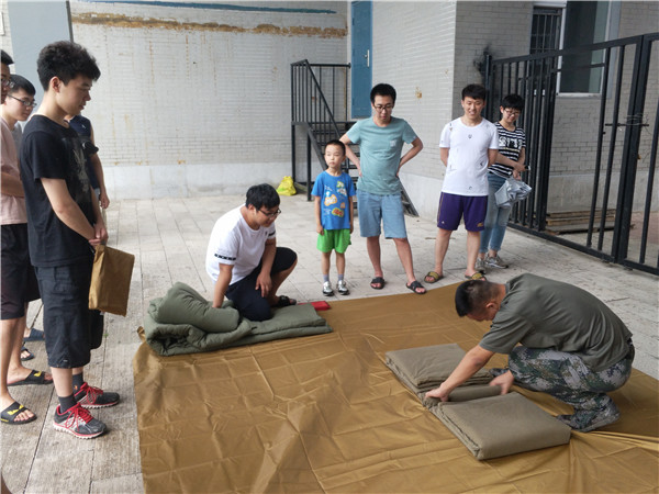 为了进一步贯彻落实学校“文化荣校”战略,让思想政治教育之花在寝室绽放,近日,学校开展了2017年度学生公寓文化精品立项活动,威尼斯144777cm以此为契机,在2013级毕业生寝室开展了“文化公寓,榜样课堂”系列活动。7月7日晚,威尼斯144777cm在新民校区操场组织、开展了“向国防生看齐——我也会叠豆腐”活动。