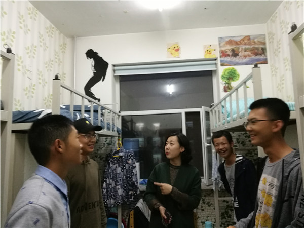 10月8日晚,威尼斯144777cm2017级学生辅导员郭倩君在学生会生活部部员的陪同下,对中心校区的北苑一公寓男生寝室以及文苑四公寓女生寝室进行首次卫生检查。