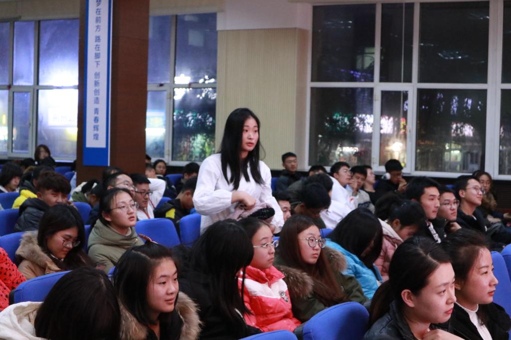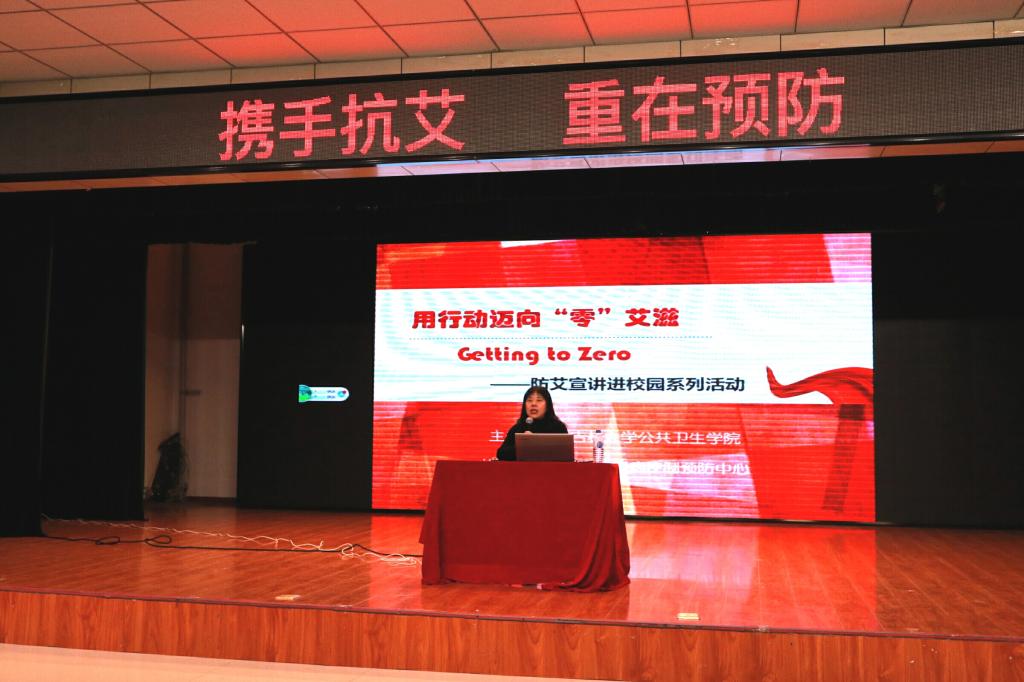 晚上六点整,宣讲正式开始。在2017级学生热烈的掌声中,杨劲松老师上台开始进行防艾宣讲。杨老师此次讲座的主要内容是大学生生殖健康与艾滋病的防治。她叮嘱2017级学生要以正常的心理来对待性,不要谈性色变,要把它摆在桌面上谈,正视并了解它才能不会进入误区,从而能够对艾滋病进行有效的防治。她告诉学生性虽然是美好的,但要对对方负责,对自己负责,性意识在性冲动来临时不可或缺。然后,她讲解了意外怀孕的危害,药物流产对女性身体带来的伤害,进一步强调了安全性行为的重要性。之后,杨老师为学生介绍了艾滋病传播的三种途径,一是通过性途径,也是当代大学生感染艾滋病的主要途径;二是通过血液途径,用未经消毒的注射器注射,及用未消毒的刮胡刀刮脸刀等;三是母婴传播。最后,老师进行了此次讲座知识的总结。