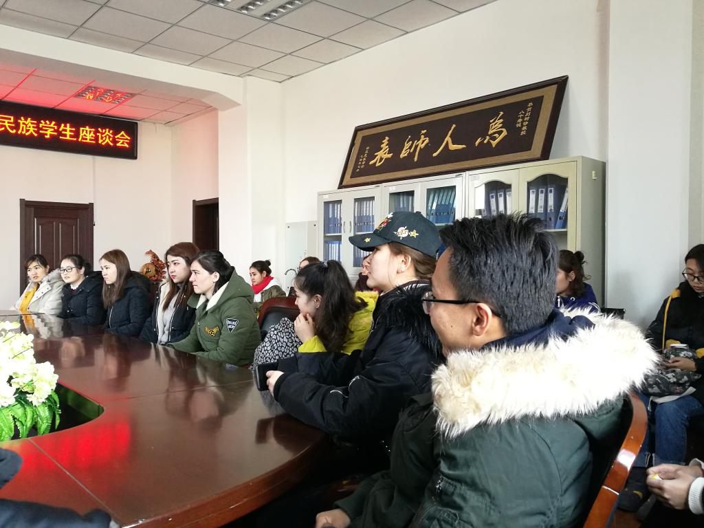 座谈会上,同学们畅所欲言,积极与老师交流,使辅导员及时了解了少数民族学生的基本情况。借助这一良好契机,辅导员也第一时间对同学们提出的问题进行了逐一解答。例如,有学生反映,在英语学习上遇到了困难;高年级学生也表示,专业外语学习时,听力存在着较大障碍。为此,学院拟为少数民族学生开展相应的英语补习工作,及时帮扶这些同学增强学业自信、提高英语成绩。还有学生反映了暑假期间的就餐问题,希望学校食堂能为维吾尔族同学单独开放窗口。针对这一问题,各位老师也及时提出了合理建议。刘丽还在会上希望同学们,要珍惜美好的大学时光,为自己的学业做长远的打算;提高自身学习上的要求,做到自觉、有效的学习,努力学习专业知识,不辜负学校老师的期望,以优异的成绩建设家乡、回馈社会。她还告诉在场同学,要在努力学习之余,加强同汉族和其他民族学生的沟通与交流,积极展示自己民族的优秀文化;对时事具有一定的判断能力,注重自身的安全与发展。