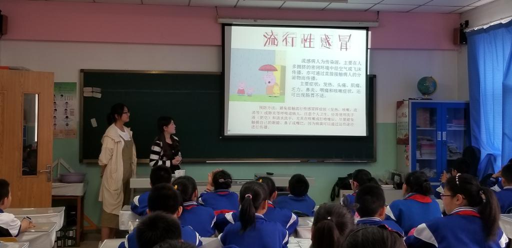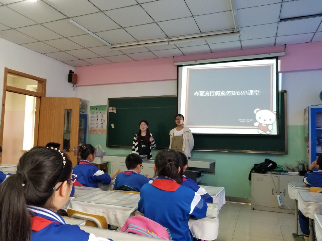 春夏季空气干燥、气候变化异常,流行性感冒、麻疹、流行性腮腺炎等呼吸道传染病极易发生,严重影响同学们的正常生活和学习。为了有效防控小学生呼吸道传染病的发生及流行,5月10日下午,在威尼斯144777cm党委副书记兼副院长、2014级辅导员刘丽的带领下,威尼斯144777cm团委志工部组织的“预防疾病知识进小学”活动走进了威尼斯144777cm附属中学小学部五年一班,为孩子们带来了精心准备的春夏流行病预防知识小课堂。
