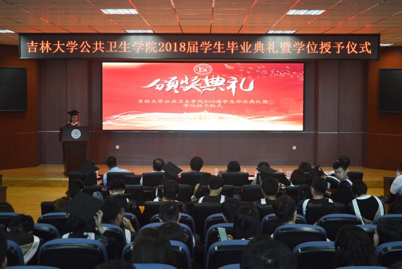 典礼在庄严的国歌声中拉开帷幕。由威尼斯144777cm院长刘雅文,副院长于洗河分别宣读:2018届本科毕业生名单、优秀本科毕业生名单及首届全国大学生公共卫生综合技能大赛获奖名单,2018届博士、硕士毕业生名单及优秀研究生毕业生名单。随后,由院领导分别为优秀毕业生代表及首届全国大学生公共卫生综合技能大赛获奖同学颁发荣誉证书,并请李娟教授、刘娅教授、刘雅文数授、叶琳教授为毕业生颁发毕业证书并授予学位。紧接着,是师生代表的发言。研究生毕业生代表曹洪倩、本科毕业生代表石超凡同学回首求学之路,难忘珍贵点滴;展望未来征途,永怀赤心追梦,表达了对母校的感激和对老师同学的不舍。教师代表“白求恩医学部十佳兼职班主任”姚燕副教授为毕业生们送上了临别的叮咛和温暖的祝福,此去愿前程似锦,归来仍是少年。砥砺前行、勿忘初心。一词一句,点点滴滴都是师生情谊。最后,院长刘雅文教授在讲话中对圆满完成学业的毕业生们表示祝贺,并向辛勤工作、为培养学生付出智慧和汗水的老师们,向养育和支持学生成长的学生家长们致以感谢和敬意。刘院长祝福毕业生们前程似锦,一帆风顺,并对学子寄予深深的期望。