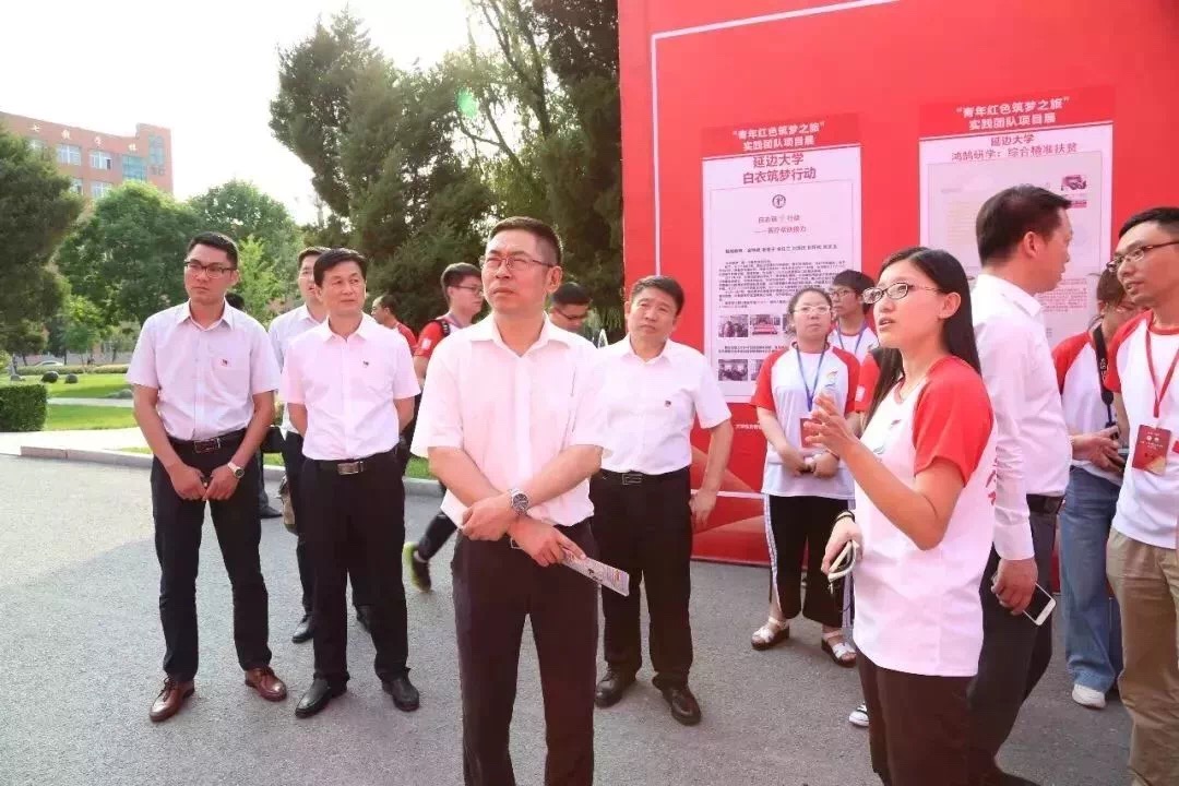 仪式结束后,各高校师生代表一同参观了“青年红色筑梦之旅”项目展。来自63所学校的123个项目参加了本次展览。2016级辅导员霍睿向观展领导介绍了威尼斯144777cm“布病e健康”、“重走白医之路,助力乡村振兴”河北唐县教育医疗公益扶贫项目的主要内容,“布病e健康”项目得到了观展领导的高度关注。通过交流,学院不仅传播了项目的创新思想,更借鉴了其他创新项目的新思路。
